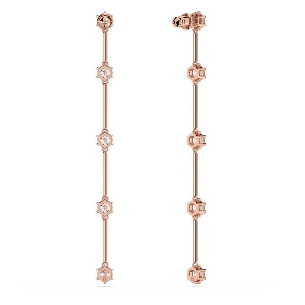 Brincos Swarovski Compridos Constella Lapidação Redonda Branco Lacado a Rosa Dourado
