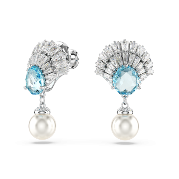 Brincos compridos Swarovski Idyllia Concha Azuis Lacado a ródio